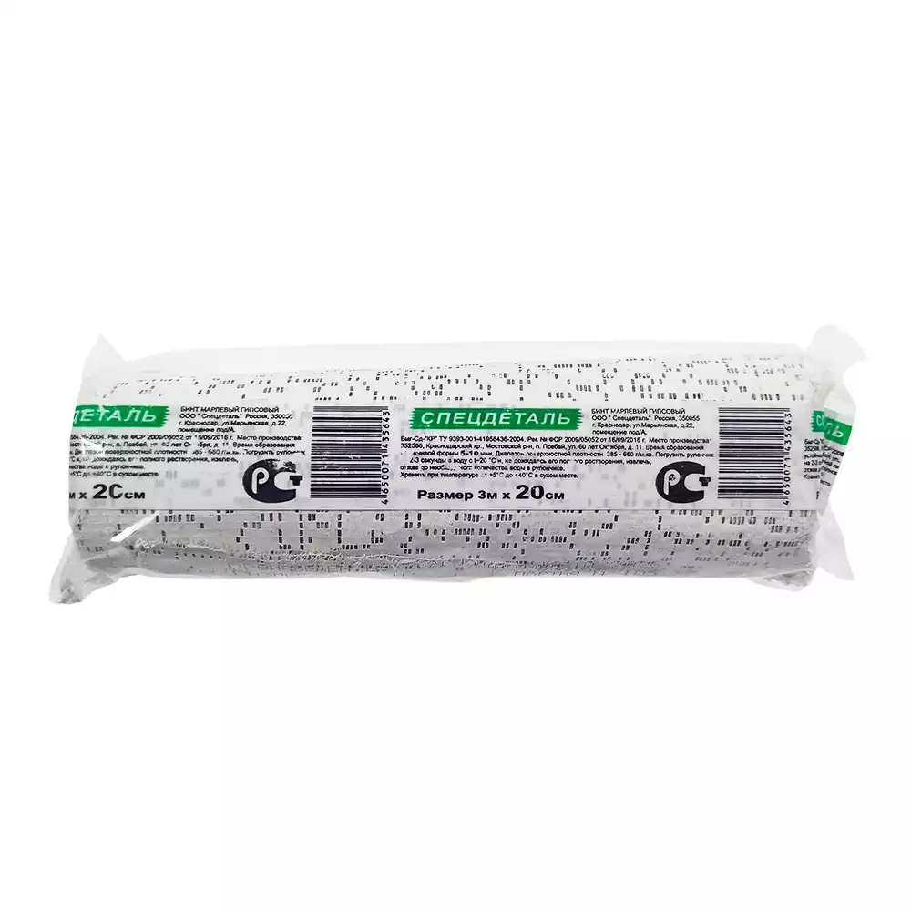 Бинт 3м*20см, гипсовый, время схватывания 2-4 минут, Спецдеталь (РОССИЯ)