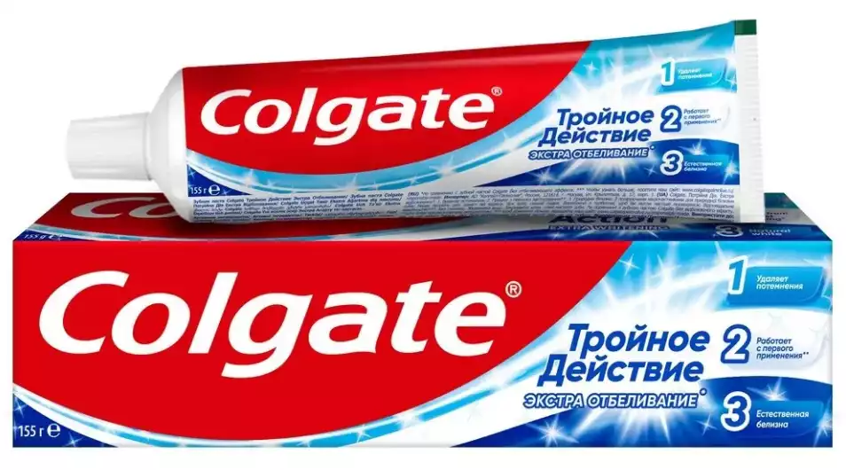 Паста зубная Колгейт 100 мл Тройное действие Экстра отбеливаниеColgate-Palmolive (China) Co., Ltd.