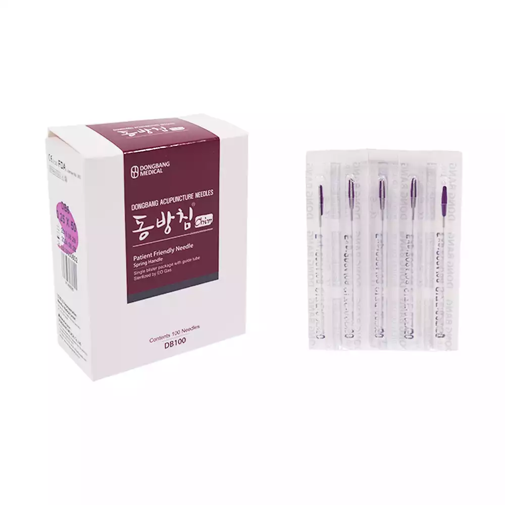 Игла акупунктурная стальная DB100, размер 0,16х15мм, с направителем и классической стальной пружинчатой рукояткой, 1шт - стерильный блистер, упаковка 100шт, Dong Bang Acupuncture Inc