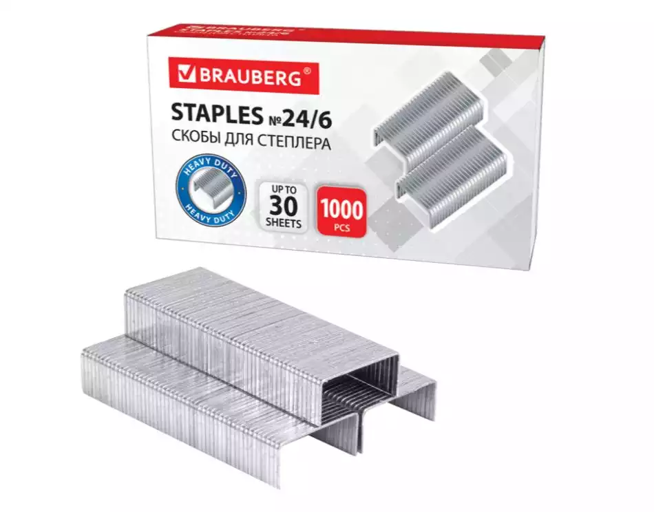 Скобы для степлера №24/6, 1000 штук, BRAUBERG, до 30 листовSHAOXING HUASHENG STATIONERY MANUFACTURING CO.,LTD