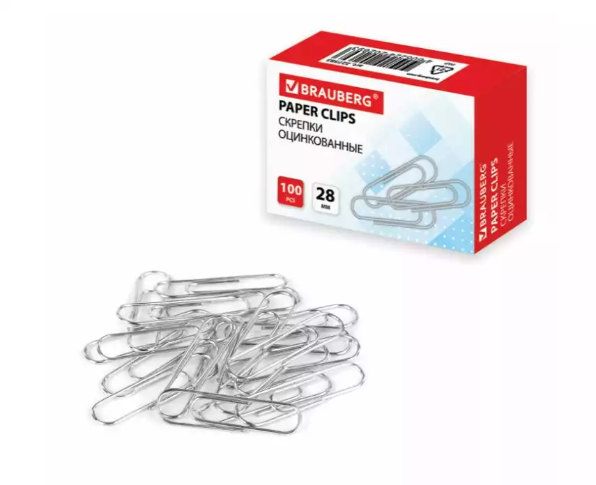 Скрепки BRAUBERG, 28 мм, оцинкованные, 100 шт., в картонной коробкеNINGBO S&L TRADING CO., LTD