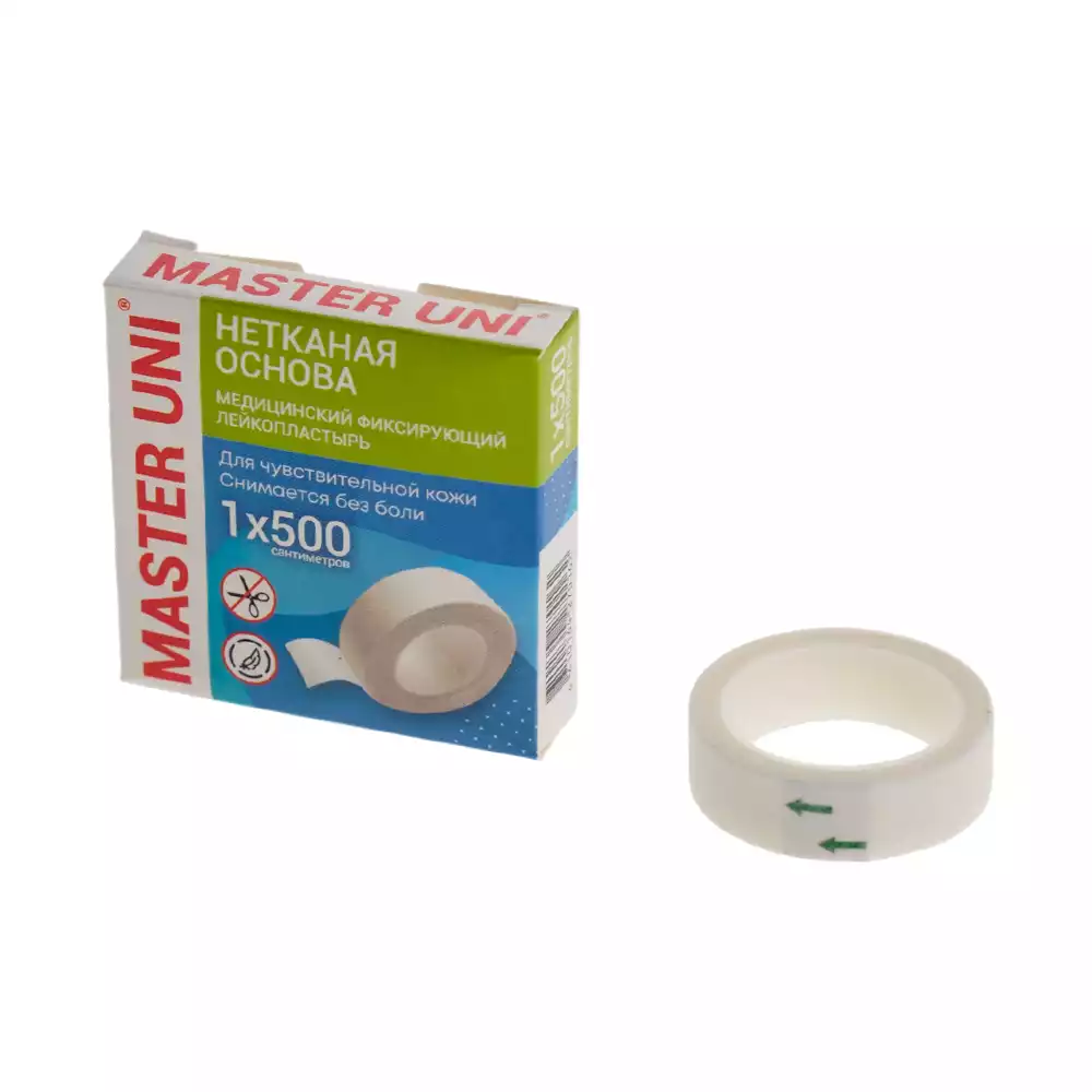 Лейкопластырь Master Uni на нетканой основе (целлюлоза), фиксирующий, размер 1см*500см, катушка в картонной коробкеООО "ХЕЛСЛАБ" (РОССИЯ)