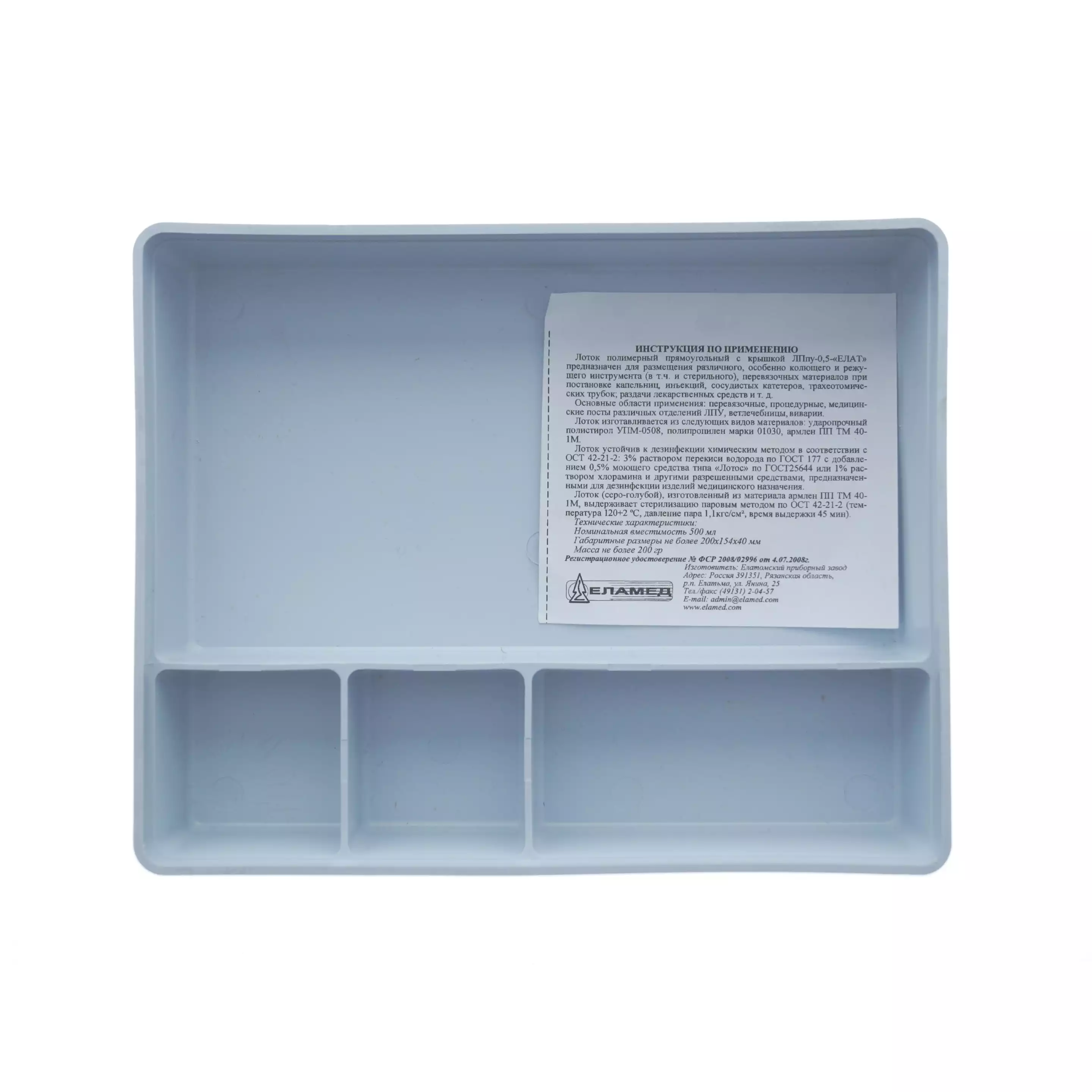 Лоток Лппу -0,85А - ЕЛАТ прямоугольный, размер 250*190*48мм, с крышкой и ячейками, автоклавируемый, полимерный, ЕПЗ АО (РОССИЯ)
