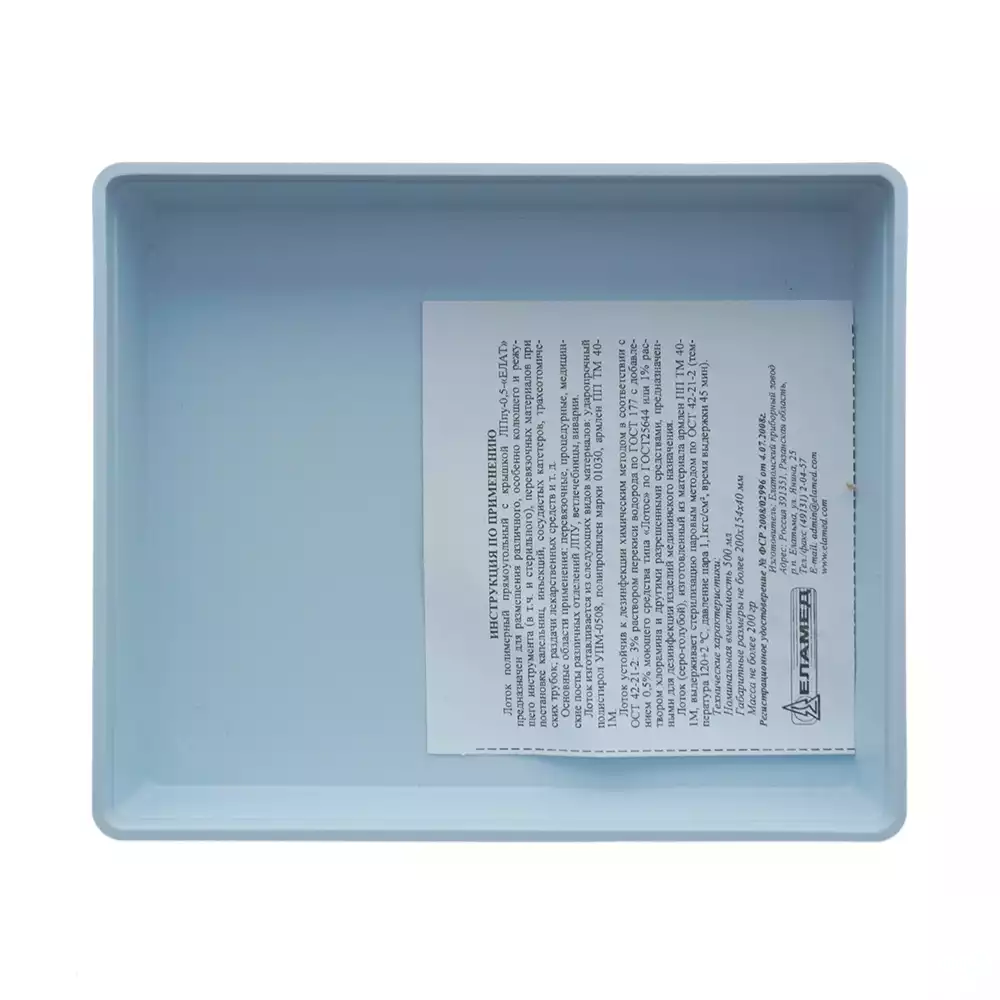 Лоток ЛПпу 0,5А ЕЛАТ прямоугольный, размер 200*154*40мм, с крышкой, автоклавируемый, полимерный, ЕПЗ АО (РОССИЯ)