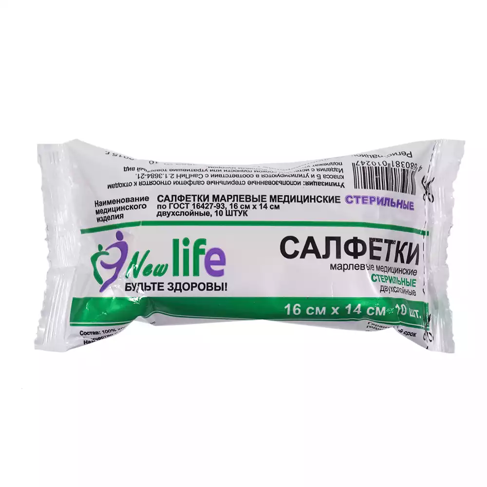 Салфетка марлевая №10, 2-х слойная, размер 16*14см Лайф, плотность 30г/м2, стерильнаяНавтекс ХБК (РОССИЯ)