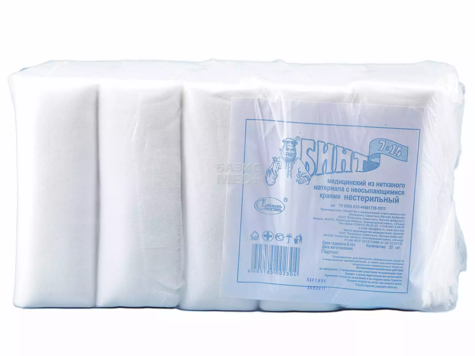 Бинт нетканный, размер 7м*14см (полиэфир 70% + вискоза 30%) нестерильный, групп.упаковкаЕмельянъ Савостинъ ВФ (РОССИЯ), 20 шт