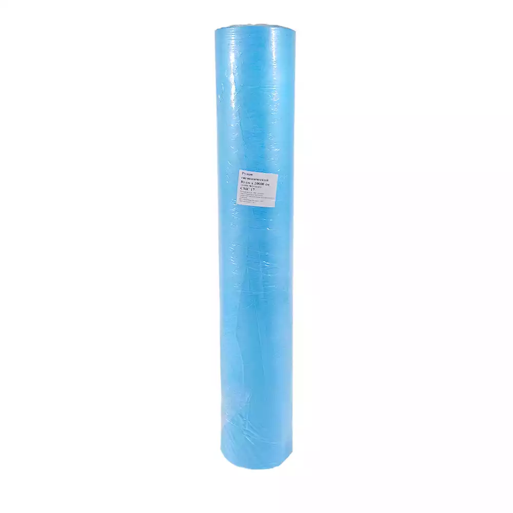 Рулон гигиенический, размер 80см*200м, материал СМС 17г/м2, без перфорации, цвет голубой, Диалог (РОССИЯ)