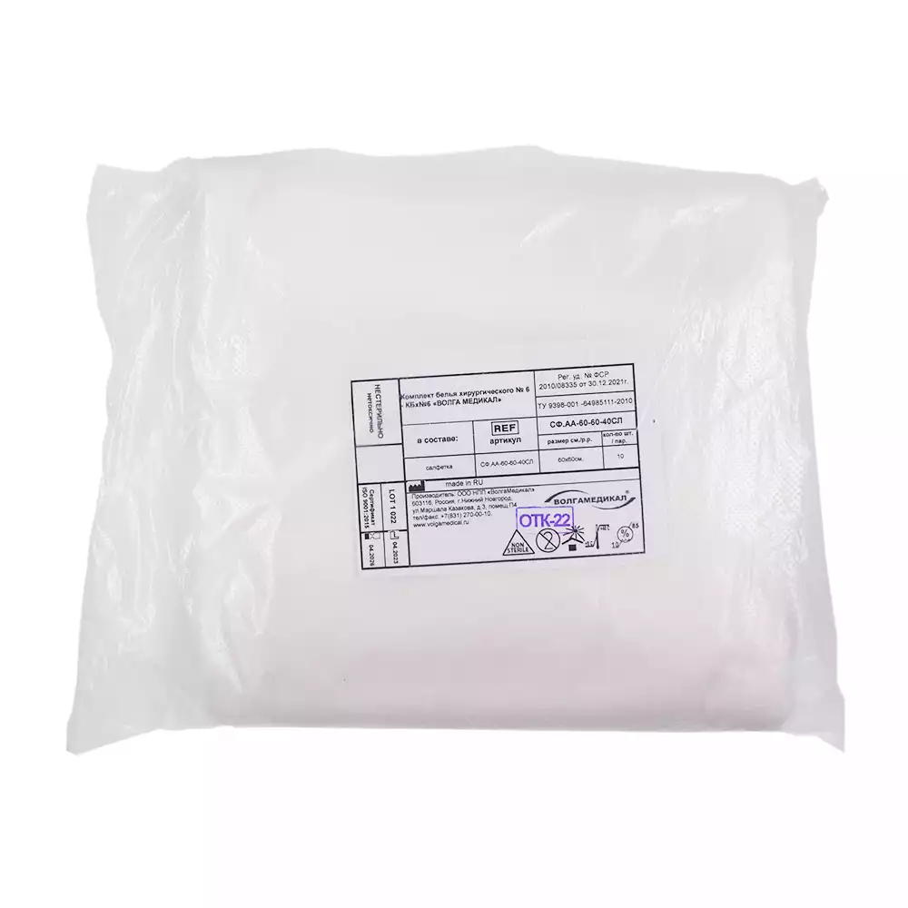 Салфетка 60*60см, материал спанлейс 40г/м2, нестерильная, белаяВолга Медикал НПП (РОССИЯ)
