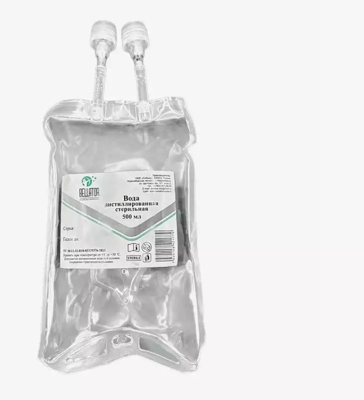 Вода дистиллированная, объем 1,0л, стерильная, пластиковая мягкая упаковка (БЕЗ РУ)ООО Сибмед (РОССИЯ), 6 шт