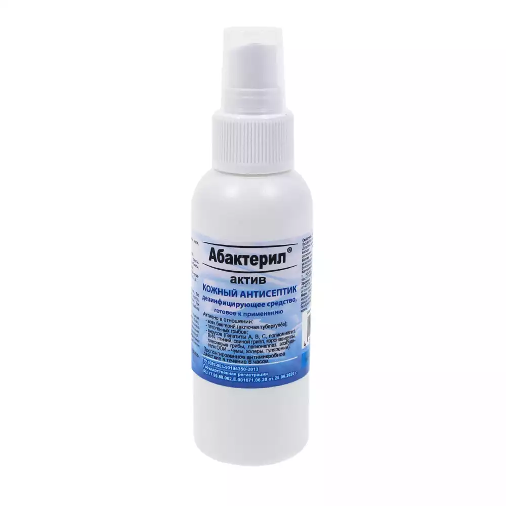 Абактерил - АКТИВ 100мл, кожный антисептик и дезинфектант для поверхностей, спрей, изопропиловый спирт – 64,0%
