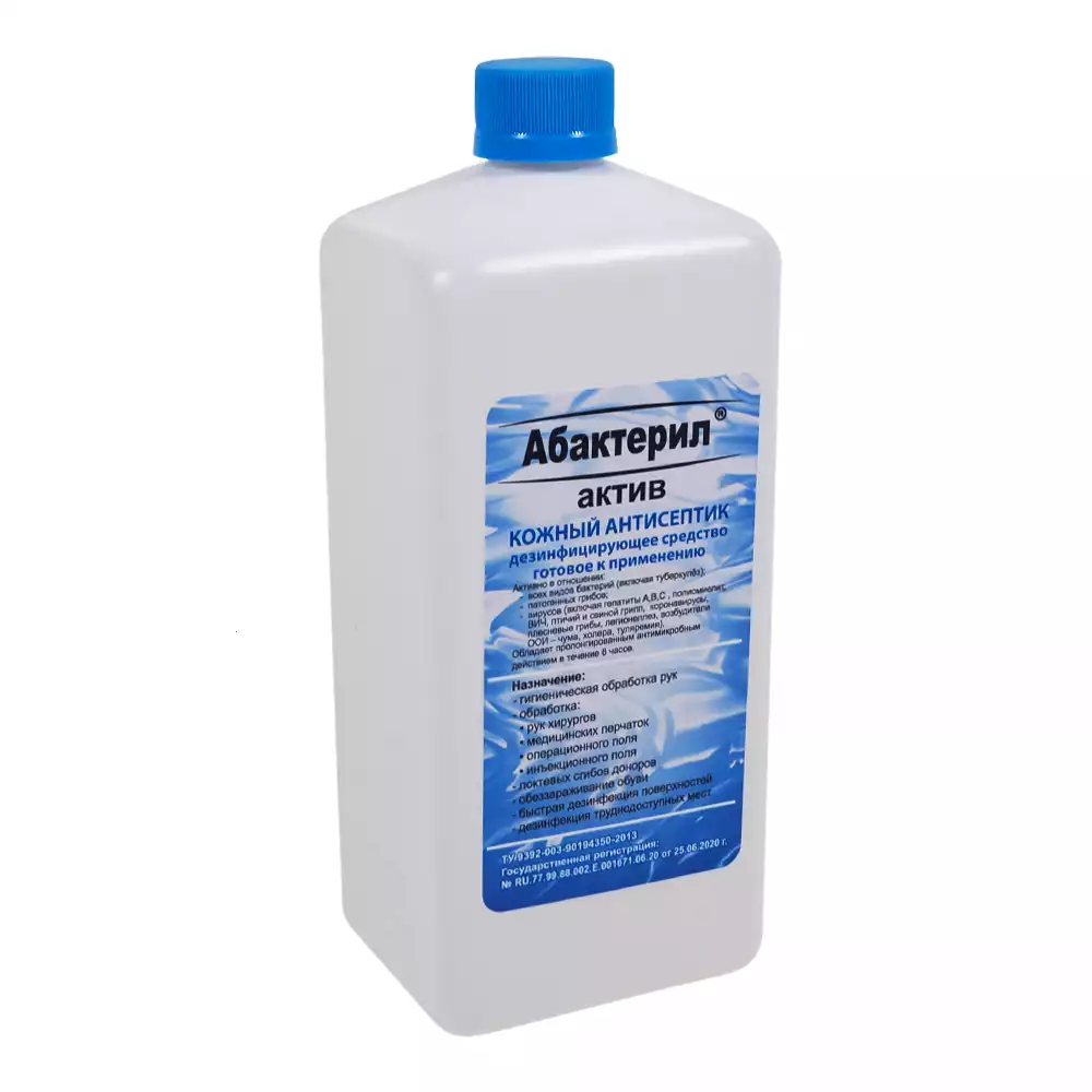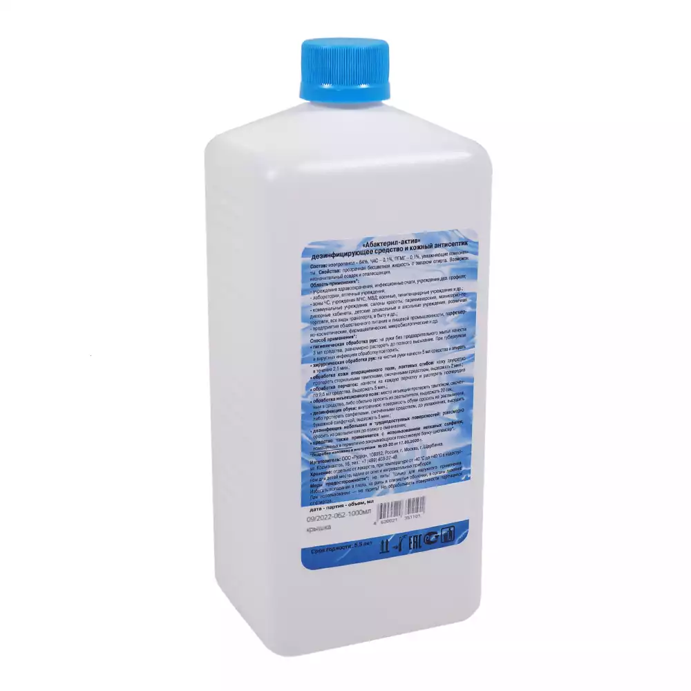 Абактерил - АКТИВ 1,0л, кожный антисептик и дезинфектант для поверхностей (готовый раствор), изопропиловый спирт – 64,0%