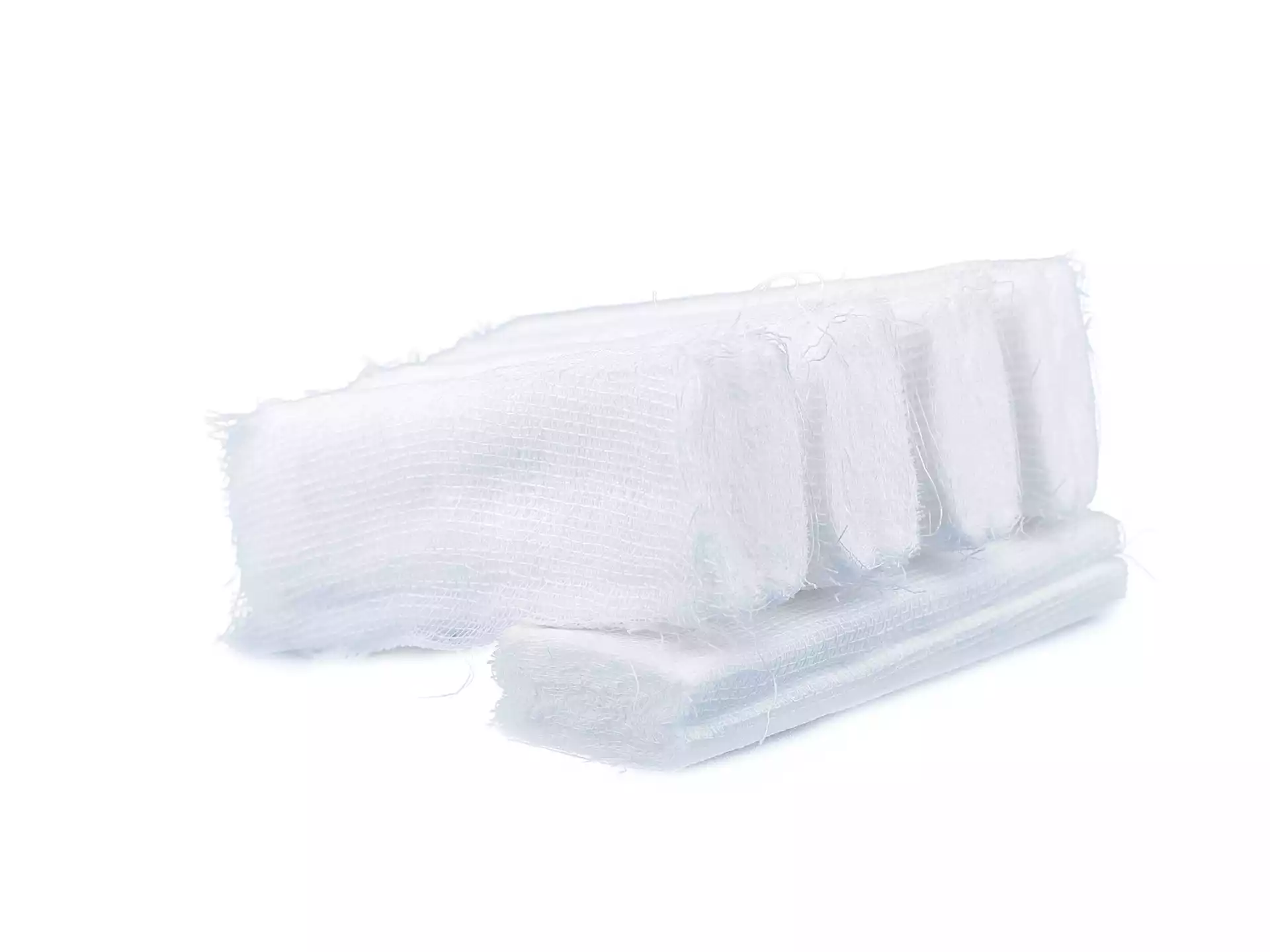 Изделие представляет собой плотно скрученный рулон марли белого цвета. Края бинта аккуратно обрезаны, обеспечивая ровную кромку без необработанных нитей, что делает его удобным в использовании. Благодаря отсутствию швов, бинт обеспечивает комфортное прилегание и минимизирует риск раздражения кожи.