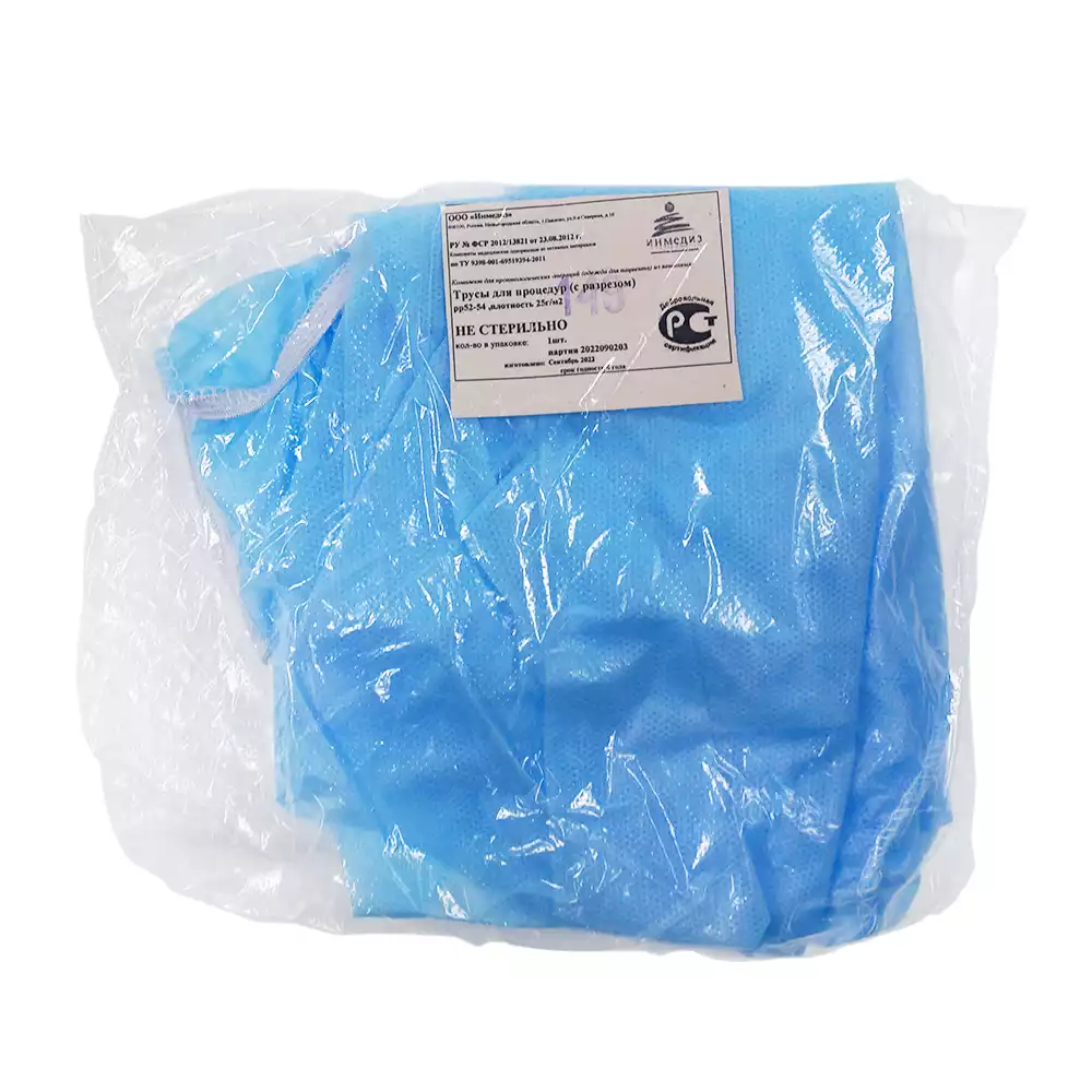 Трусы (шорты) с разрезом, длина 38м, размер 52-54, материал СМС 25г/м2, нестерильные, индивидуальная упаковка