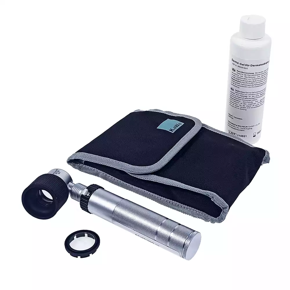 Дерматоскоп EUROLIGHT D30 (3,5В, метал. рукоять, лампа, 10-крат.увеличение, регулировка света, в сумочке+дерма-гель) №01.31630.811