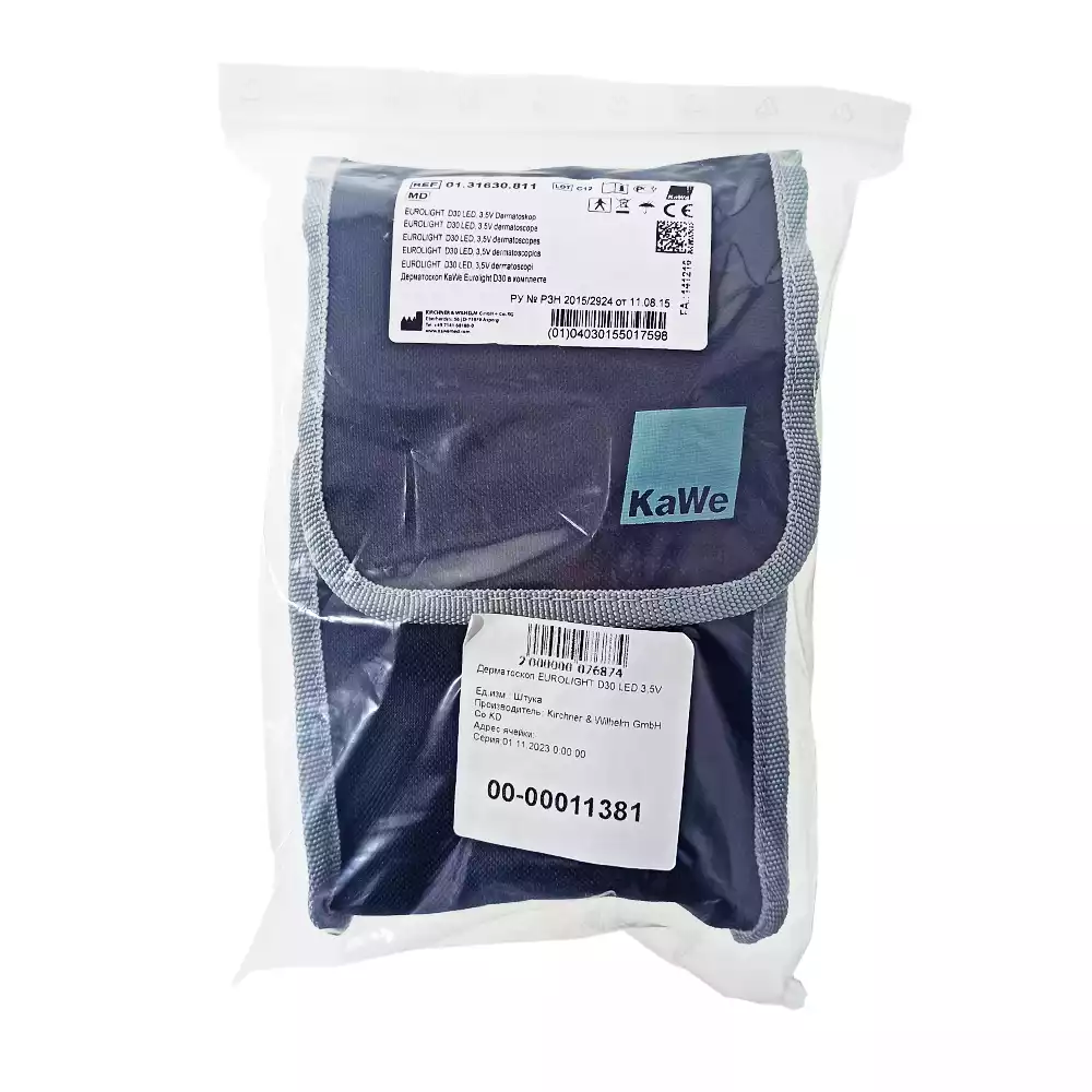 Дерматоскоп KaWe Eurolight D30 (LED) - клинический инструмент для визуального исследования кожного покрова со штекерной рукояткой и LED-лампой 3,5 В. Выделяется из ряда моделей дерматоскопов продолжительностью эксплуатации источника света – 50.000 часов вместо 15 – 20. Преимущества LED-технологии – значительное повышение соотношения силы светового потока к потребляемой мощности. Кроме того, LED-лампа обеспечивает максимальную освещенность непосредственно с момента включения и препятствует тепловыделению в направлении освещаемого поля. Свободный от мерцания свет также предотвращает стробоскопический эффект. Дерматоскоп KaWe Eurolight D30 (LED) – отличный прибор по оптимальной цене.