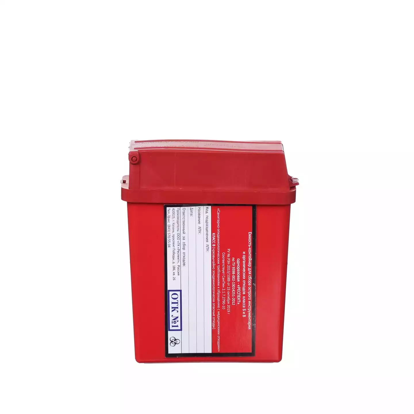 Емкость-контейнер (класса В) для сбора острого инструментария, пластиковый, одноразовый - предназначен для бесконтактного снятия игл, разной конфигурации, за счет наличия иглоотсекателя, во избежание получения медработником производственной травмы. Содержимое контейнеров подлежит дезинфекции. Применяется в процедурных, операционных, лабораториях, на скорой помощи и др.