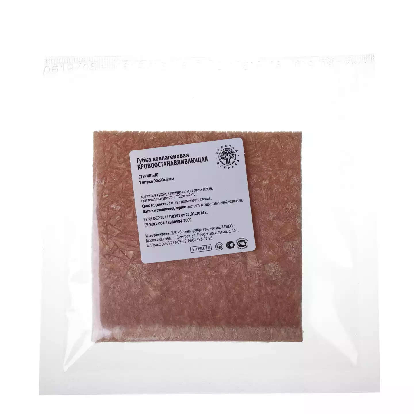 Губка коллагеновая кровоостанавливающая (90х90мм, стерильная) предназначена для оказания местного гемостатического и саморассасывающегося коллагенового раневого покрытия для остановки различных кровотечений, обладает широким спектром антимикробной активности.