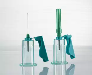 Двусторонняя игла размером 21G на 1 дюйм (0,8 на 25 миллиметров) с интегрированным держателем разработана для проведения забора венозной крови непосредственно в вакуумные пробирки.