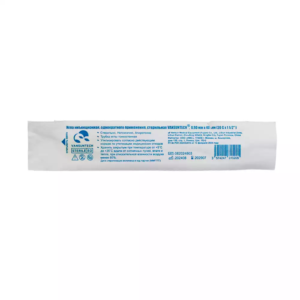 Игла VANSUNTECH инъекционная 20Gх1 1/2 (0,9х40мм), стерильная, желтая, 100 шт