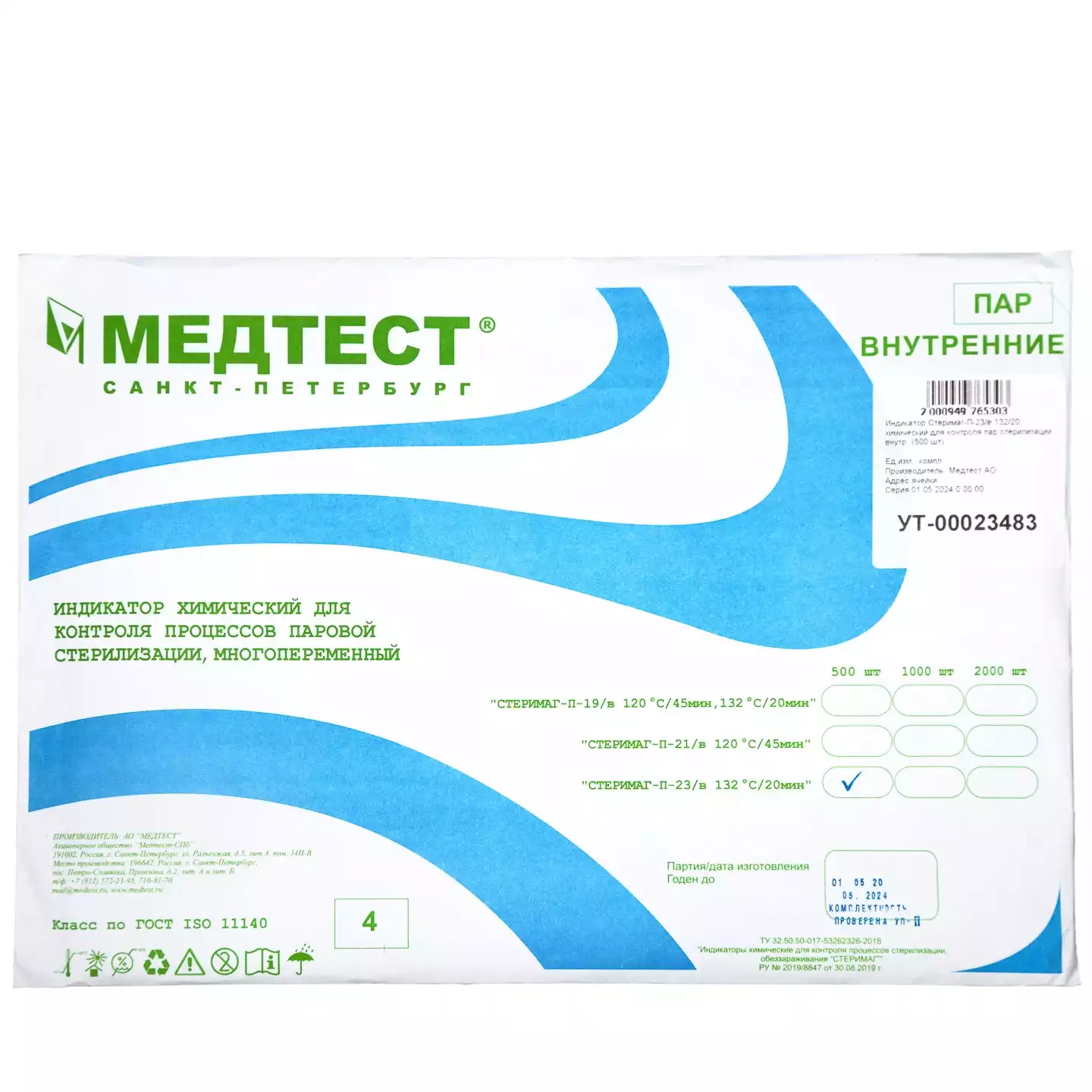 СТЕРИМАГ-П-23/в 132°С/20 мин размещаются внутри стерилизационных упаковок.