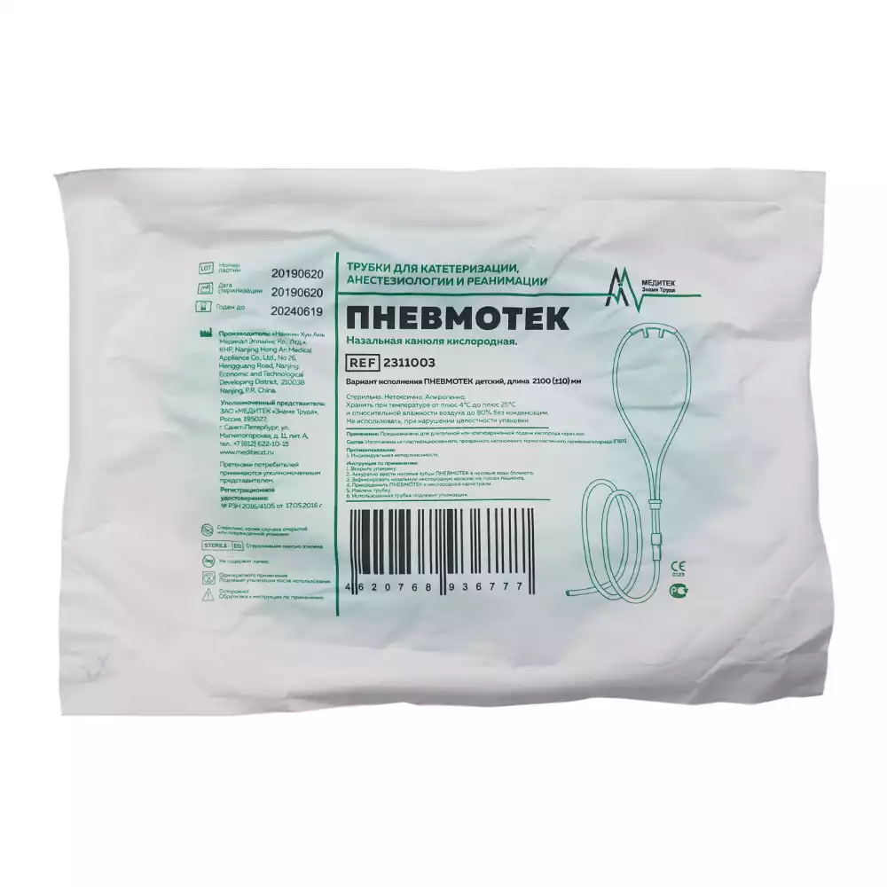 Канюля назальная ПНЕВМОТЕК кислородная S (педиатрическая), с трубкой 2,1м, стерильная