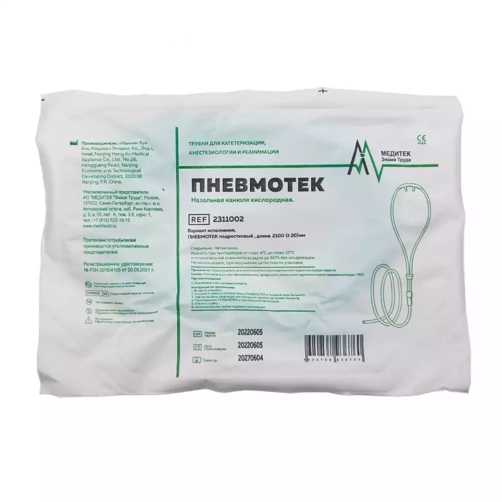 Канюля назальная ПНЕВМОТЕК кислородная M (подростковая), с трубкой 2,1м, стерильная