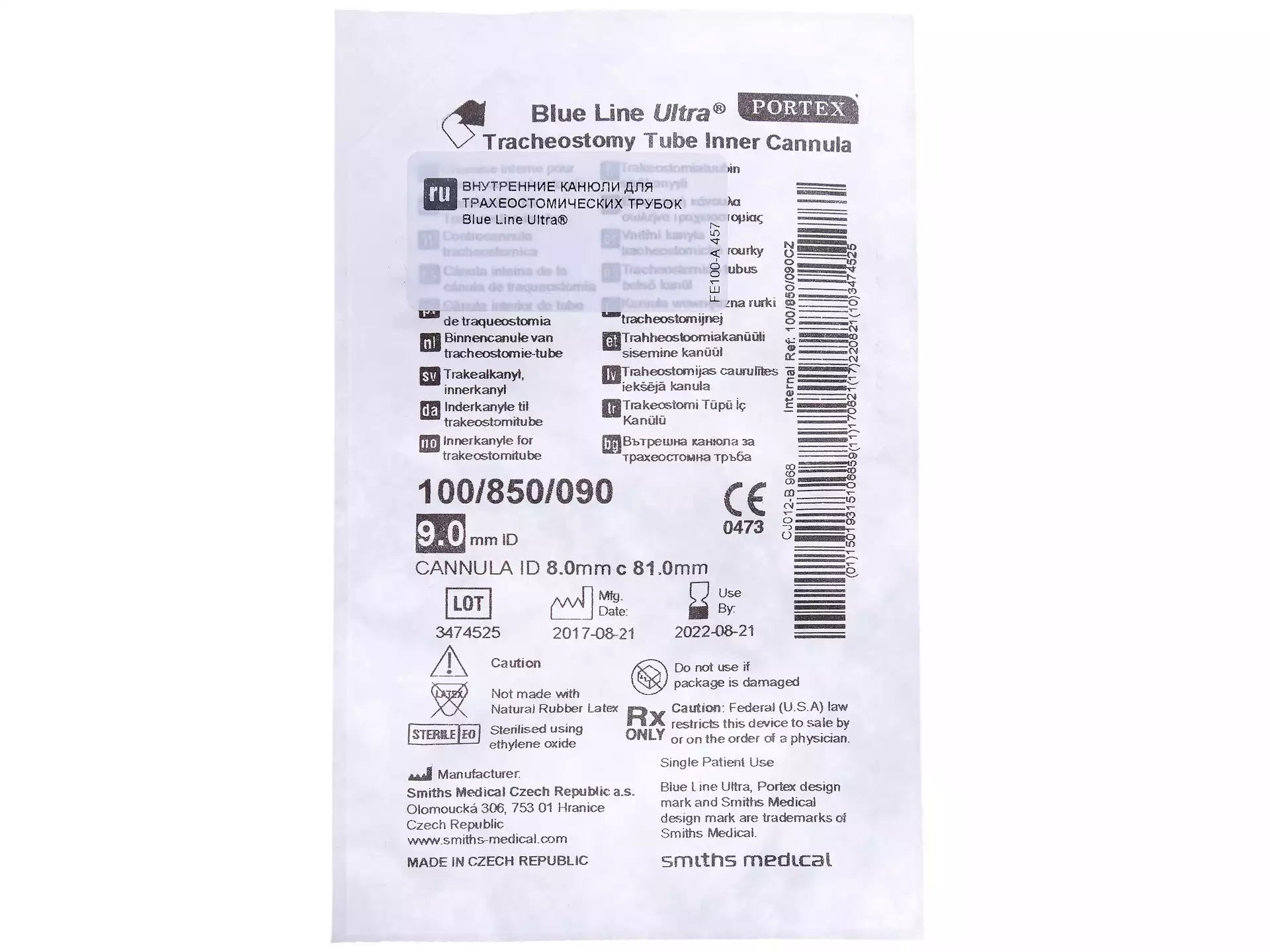 Внутренняя канюля для трахеостомической трубки Blue Line Ultra, размер 9,0, диаметр 7,5/9,0мм, длина 81,0мм, для трубок 100/850 не фенестированная (белая)