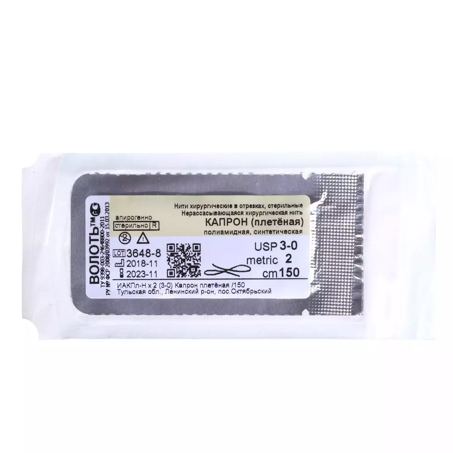 Капрон плетеный ИАКПл-Н х2 (3/0), без иглы, длина 150см