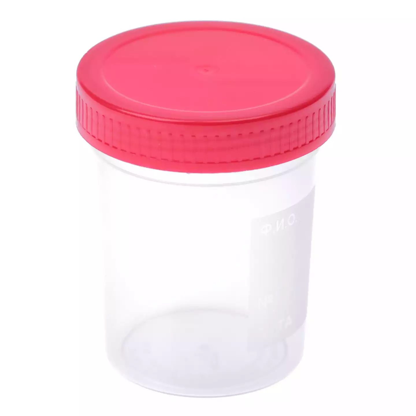БПАмк 100-02 «ЕЛАТ» — полимерная баночка для сбора мочи объемом 130 мл с завинчивающейся крышкой и прозрачными стенками, одноразовая, стерильная.