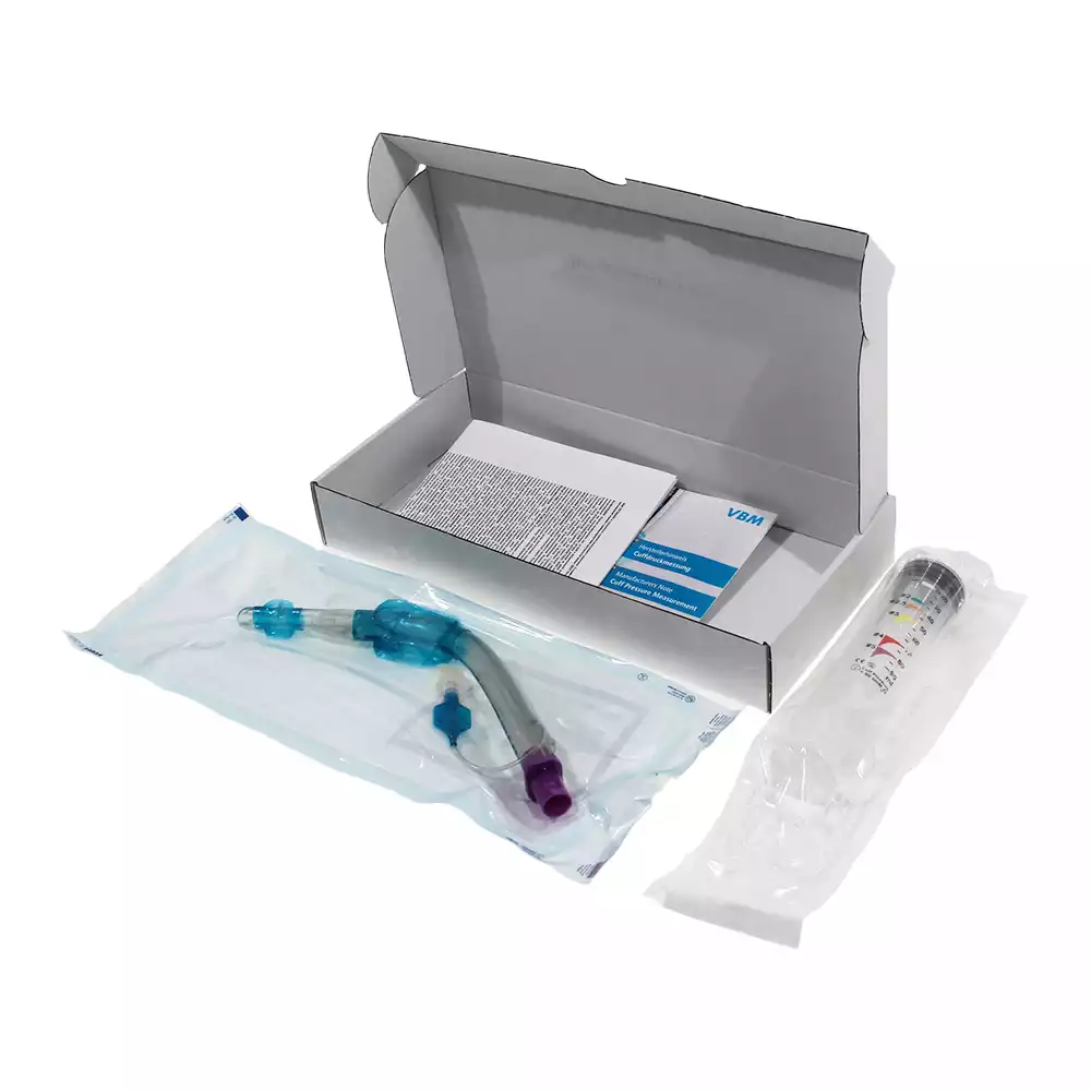 Применение цветовой кодировки объема раздутия помогает точно подобрать нужный объем воздуха. Шприц для раздутия манжеты имеет цветовую маркировку объема. Соответсвующая цветовая маркировка объема воздуха применяется для маркирования коннекторов ларингеальных трубок VBM.