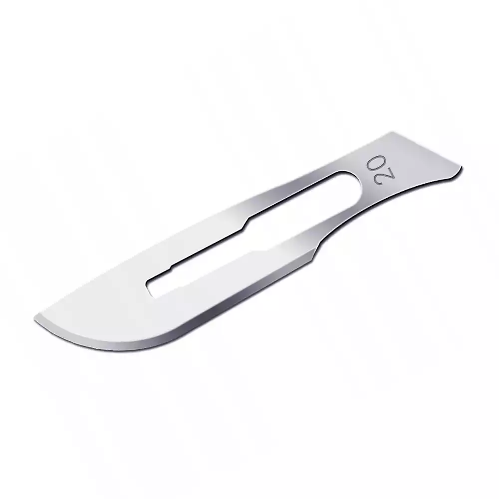 Лезвие №20, каждое лезвие для хирургического скальпеля упаковано в фольгу. ПЯвляется увеличенной версией лезвия №10 с изогнутой режущей кромкой и не заточенной спинкой. Используется преимущественно в ортопедической и общехирургической практике.