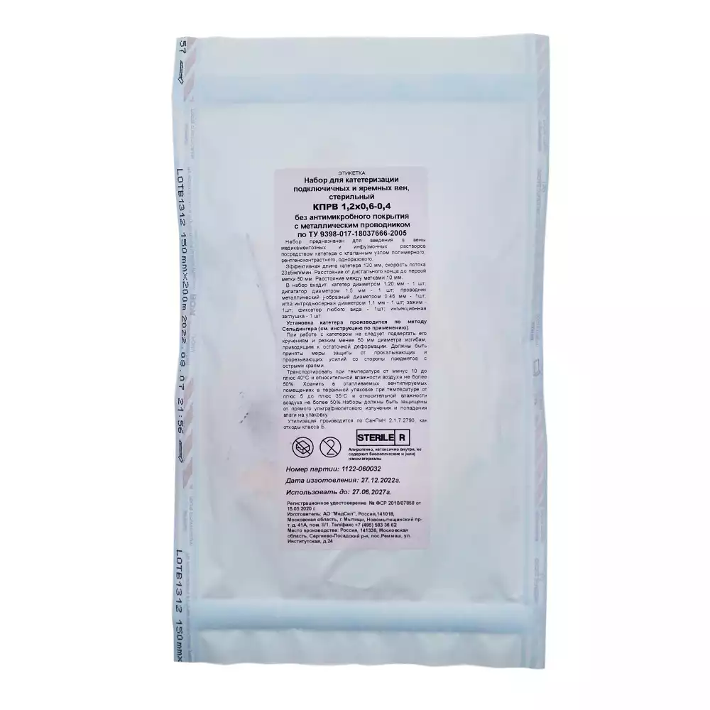 Набор для катетеризации подключичных и яремных вен, КПРВ, предназначен для введения в вены медикаментозных и инфузионных растворов.