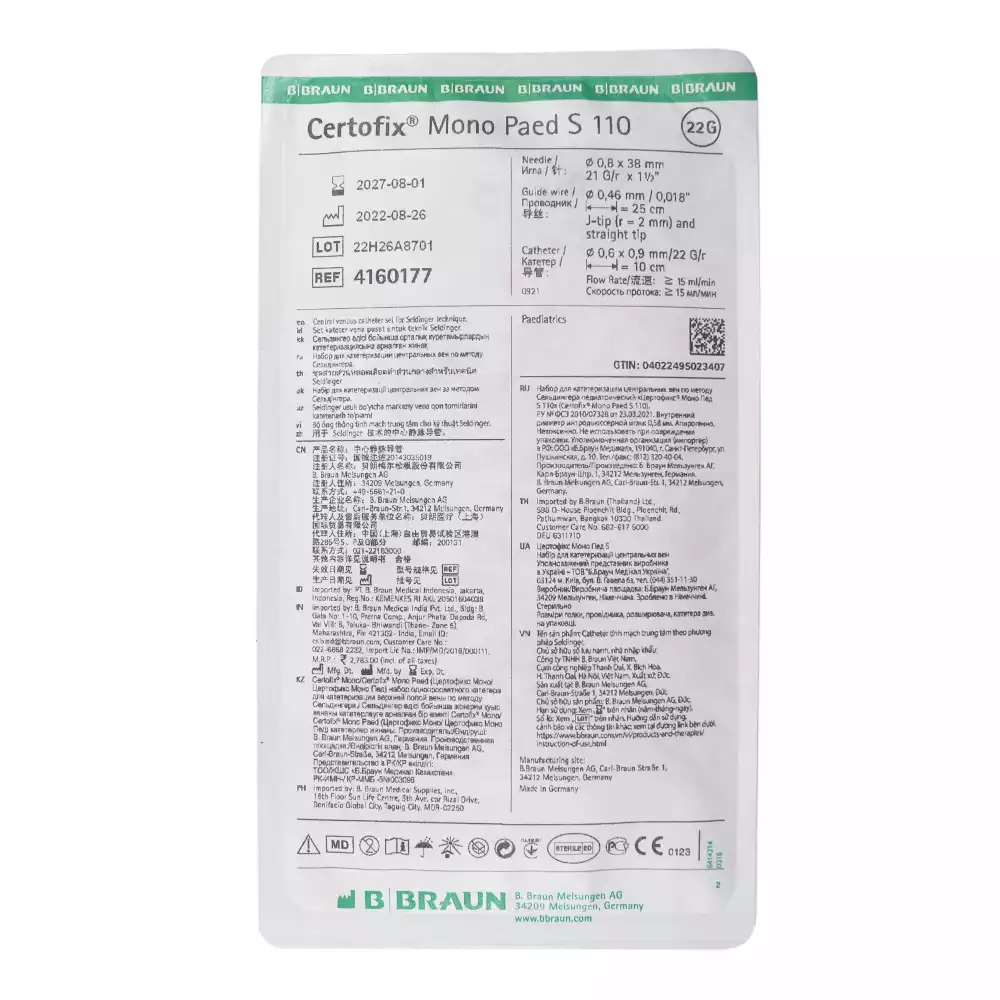 Цертофикс Моно Пед (изгибоустойчивый)- Набор с одноканальным катетером для катетеризации полой вены по методу Сельдингера с возможностью ЭКГ контроля положения катетера (педиатрический).