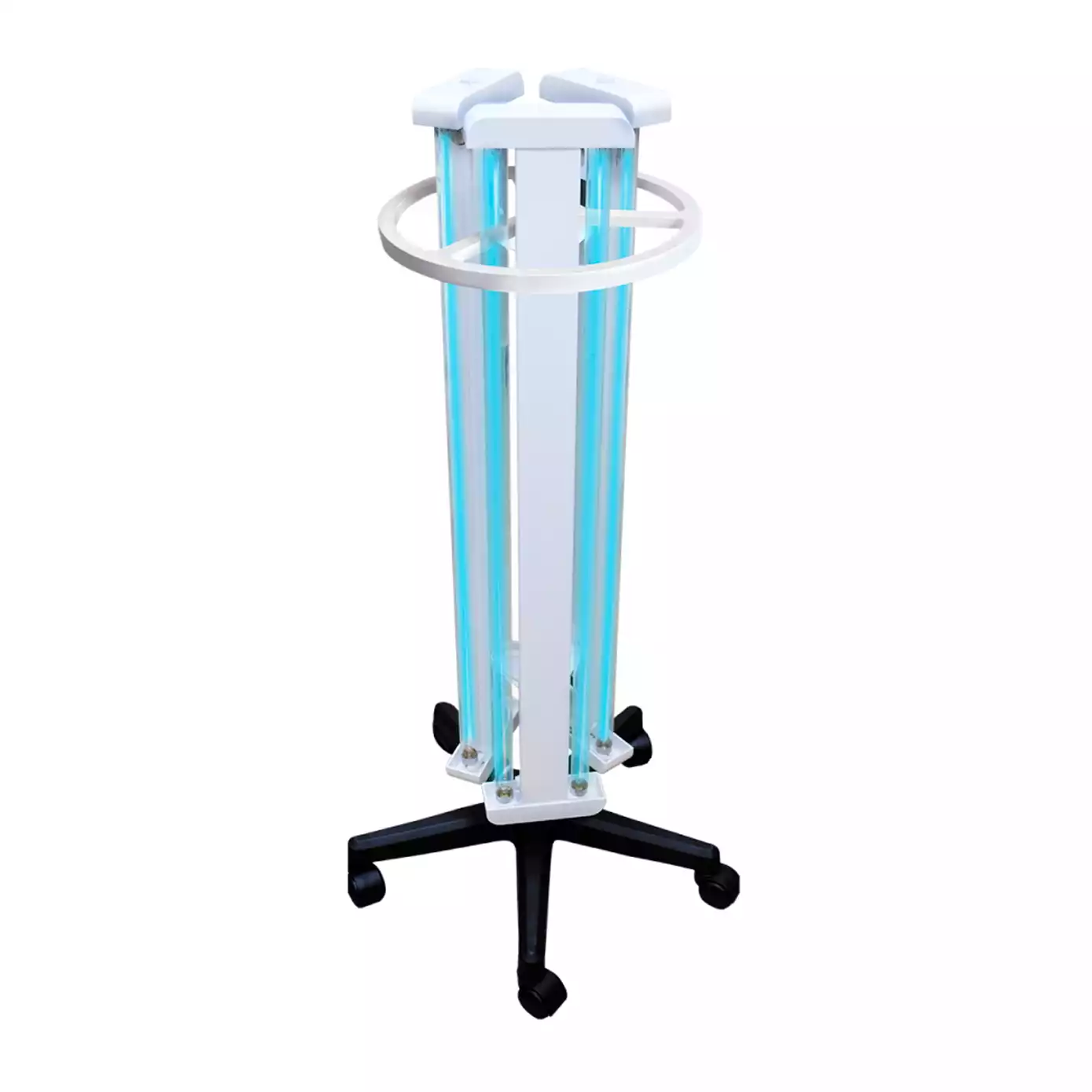 Облучатель бактерицидный передвижной ОБПе-450 (шестиламповый) предназначен для быстрого обеззараживания воздуха и поверхности в помещениях, где затруднено или малоэффективно применение настенного или потолочного типов облучателей. Благодаря своей конструкции и легкости перемещения, рекомендуются для поочередной дезинфекции нескольких помещений или для использования в помещениях большой площади, без присутствия людей. Облучатель отличает простота конструкции и привлекательный дизайн. Пять поворотных колес в основании облучателя позволяют легко перемещать его в помещениях. Легкосъемные крышки корпуса обеспечивают простой доступ к электрическим компонентам облучателя, позволяя быстро осуществлять его техническое обслуживание.