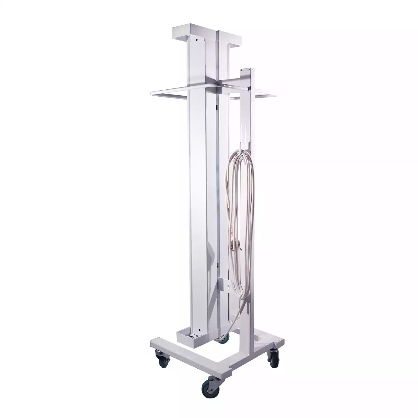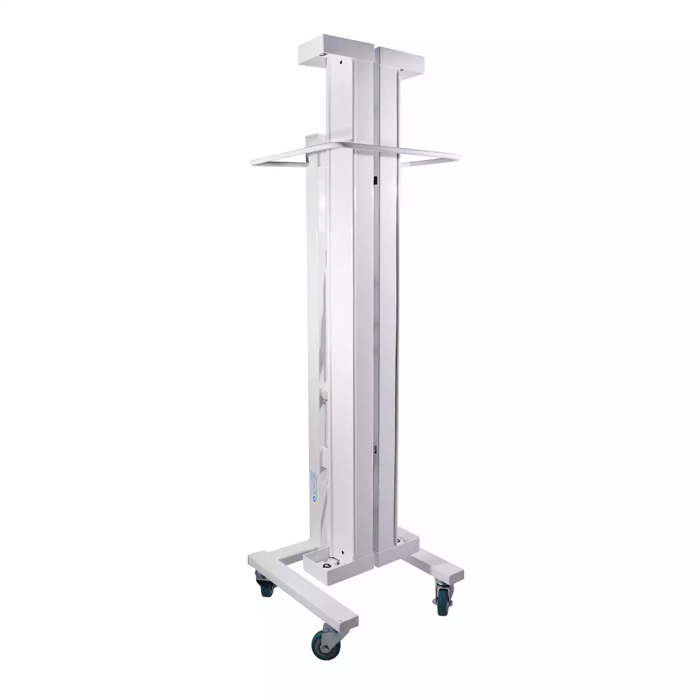 Предназначены для быстрого обеззараживания воздуха и поверхностей помещений жестким ультрафиолетом в отсутствие людей и животных. Конструкция состоит из металлической передвижной стойки с навешанными на нее открытыми бактерицидными облучателями. Четыре поворотных колеса обеспечивают высокую подвижность и хорошую устойчивость изделия.