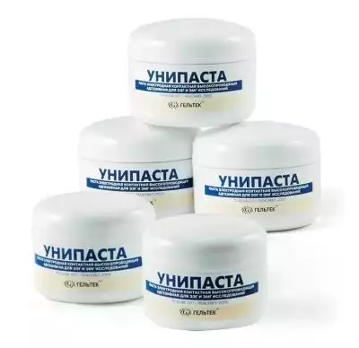 Паста электродная контактная, высокопроводящая, адгезивная «Унипаста» - применяется в качестве фиксирующей и электропроводящей контактной среды при установке электродов на поверхности головы и тела при проведении следующих электрофизиологических исследований: электроэнцефалографии (ЭЭГ),вызванных потенциалов (ВП) мозга, транскраниальной магнитной стимуляции (ТМС), электромиографии (ЭМГ) и определении скоростей проведения по нервам, полисомнографии, проведении биообратной связи (БОС) по ЭЭГ и ЭМГ и т.д. Паста Унипаста обеспечивает надежный контакт при работе с многоразовыми электродами при проведении различных электронейромиографических исследований, позволяет электродам оставаться на месте, проводя электрические сигналы, паста не высыхает, крепко держится на коже пациента и позволяет проводить длительную и качественную реагистрацию ЭЭГ сигнала как у детей, так и взрослых.