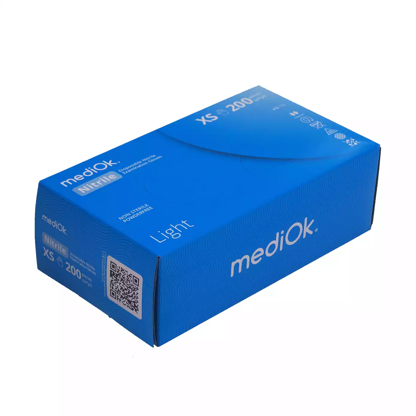 Перчатки mediOk LIGHT, размер XS, нитриловые, вес 5,4 г/пара, неопудренные, текстурированные на пальцах, цвет голубой, нестерильные, упаковка 100пар