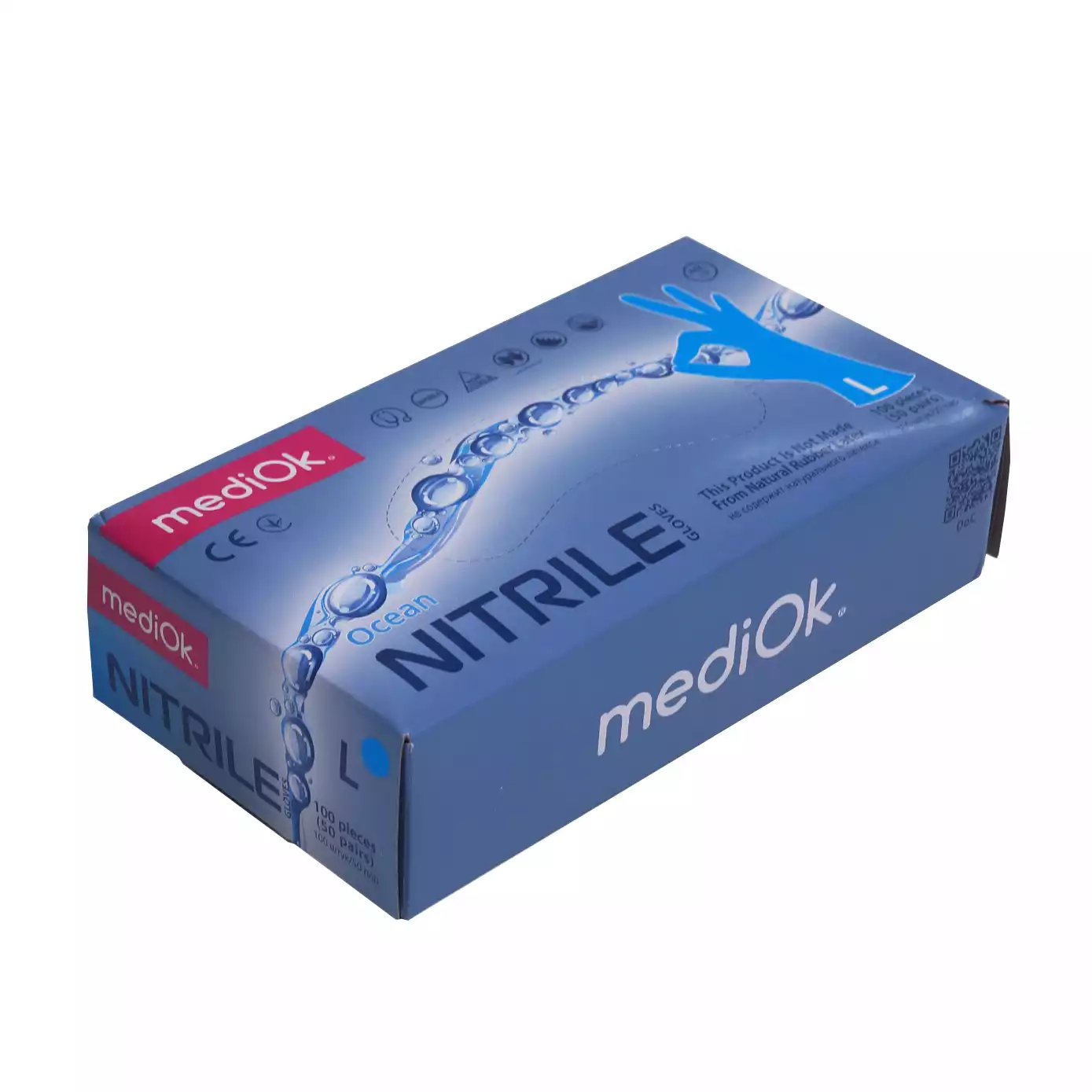 Перчатки mediOk Ocean, размер L, нитриловые, вес 7,0г/пара, неопудренные, текстурированные на пальцах, цвет голубой, нестерильные