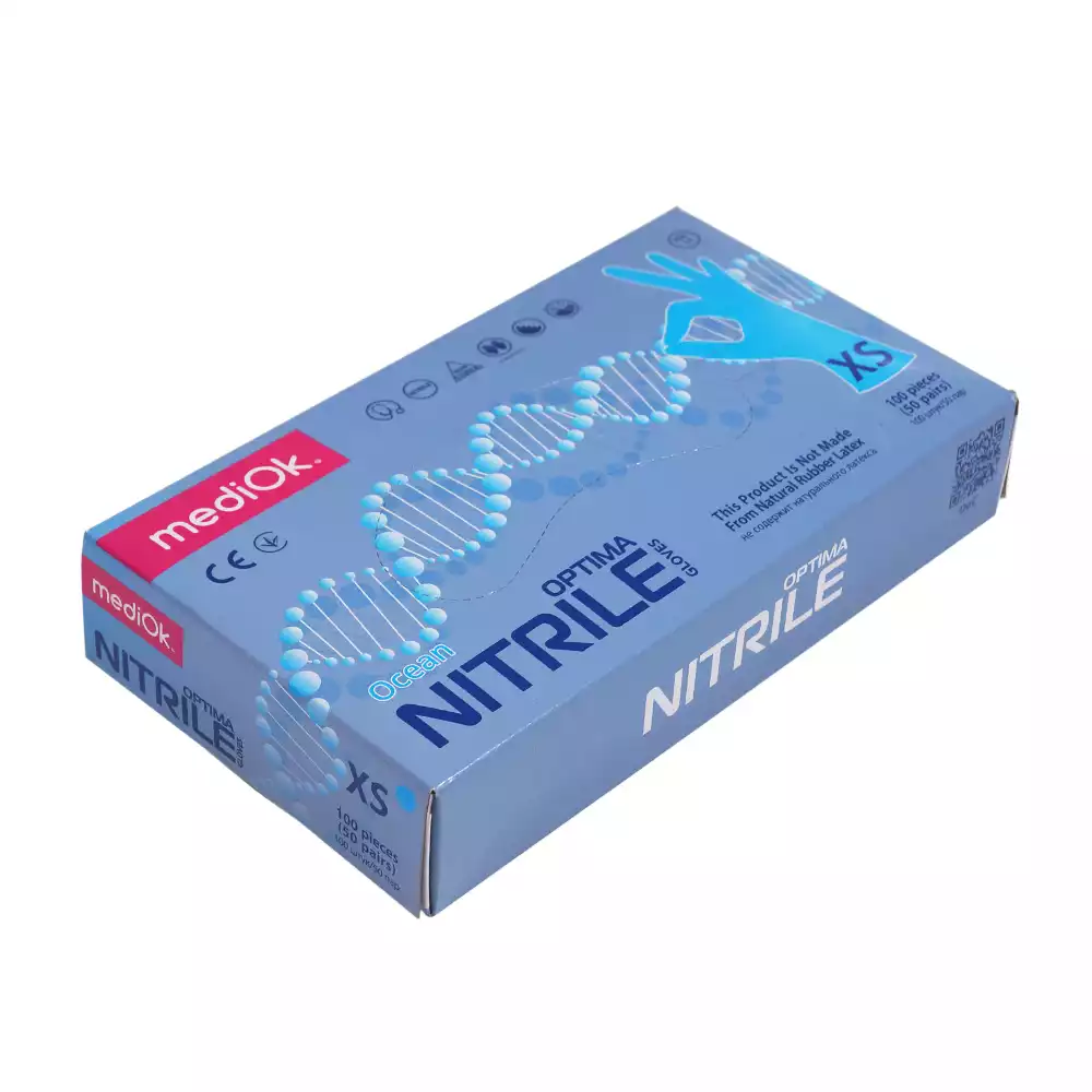 Перчатки mediOk OPTIMA, размер XS, нитриловые, вес 6,0г/пара, неопудренные, текстурированные на пальцах, цвет голубой, нестерильные, упаковка 50 пар