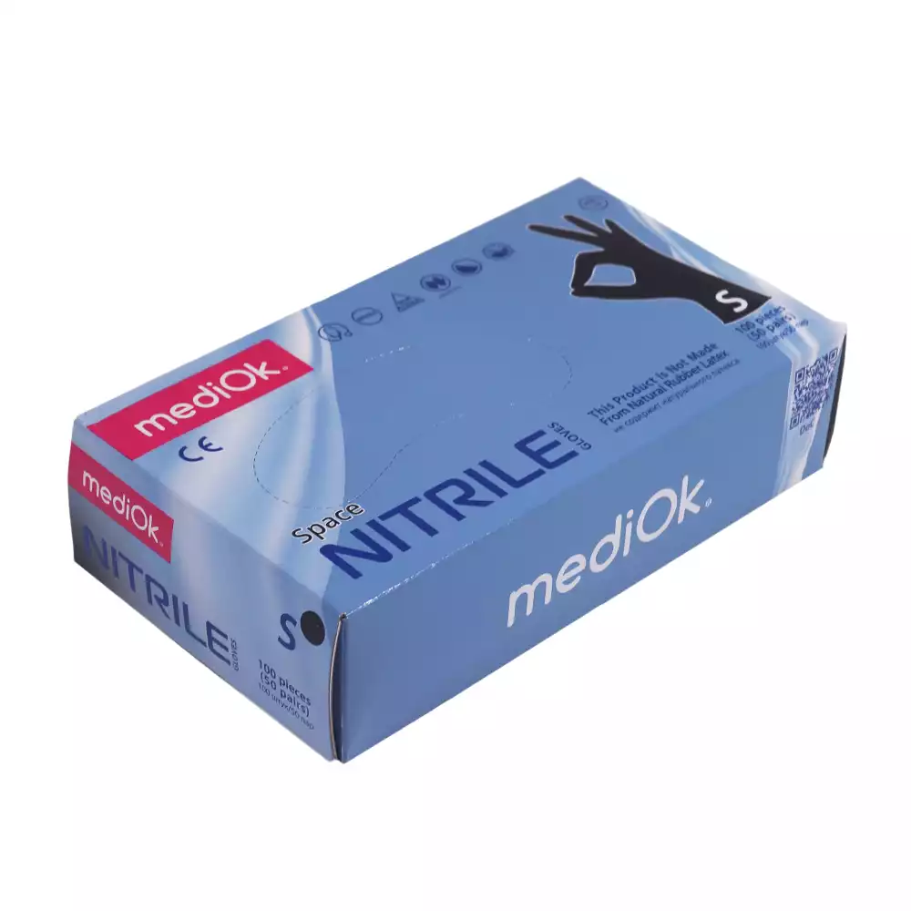 Перчатки mediOk Space, размер S, нитриловые, вес 7,0г/пара, неопудренные, текстурированные на пальцах, цвет черный, нестерильные