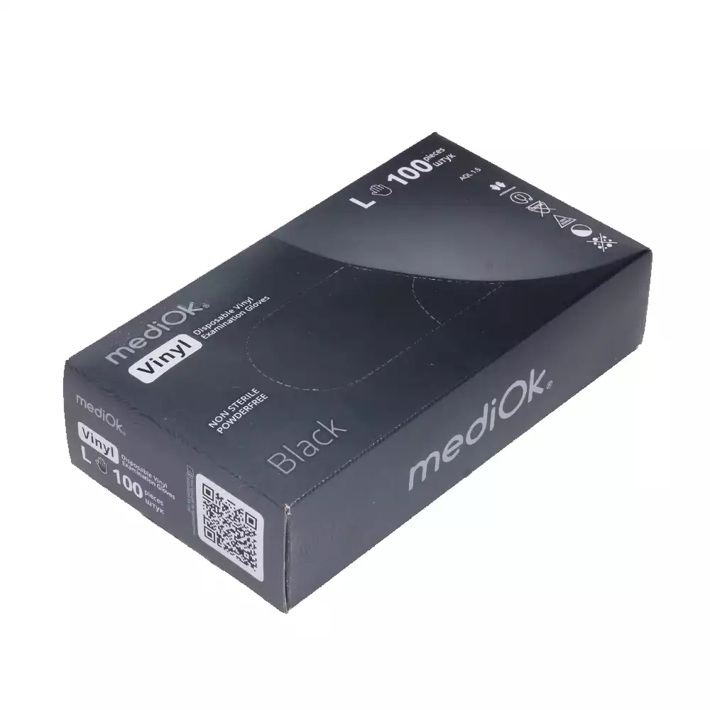 Перчатки смотровые mediOk Vinyl, размер L, виниловые, неопудренные, нестерильные, гладкие, черные, упаковка 50 пар