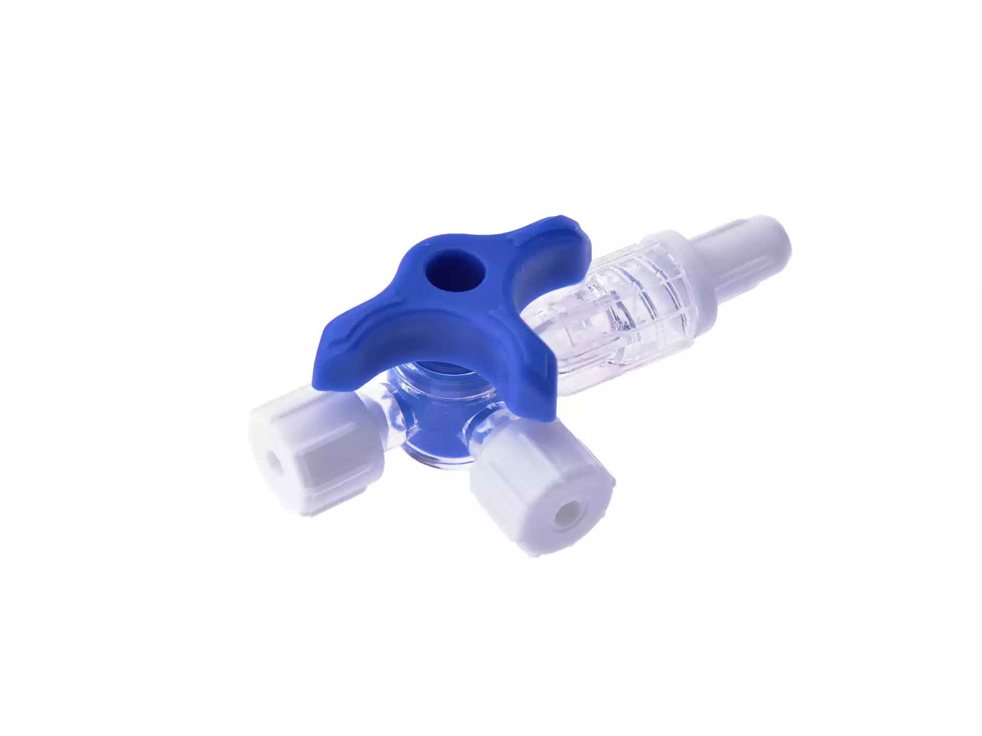 Краник трехходовой медицинский (тройник) - предназначен для соединения инфузионной/трансфузионной линии (магистрали) и постоянного устройства, находящегося в вене с целью контроля введения растворов и препаратов при дополнительных вливаниях. При помощи краника можно изменять направление потока или останавливать инфузию.