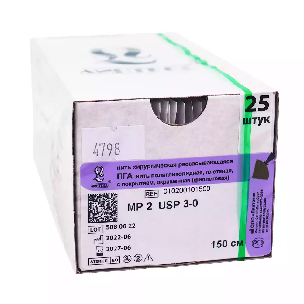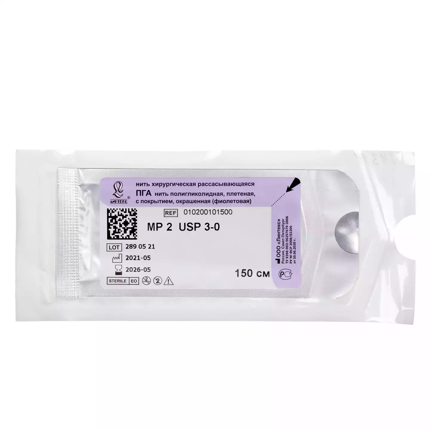ПГА MP2 (USP3-0), длина 150см, нить полигликолидная плетеная с покрытием, окрашенная (фиол.)
