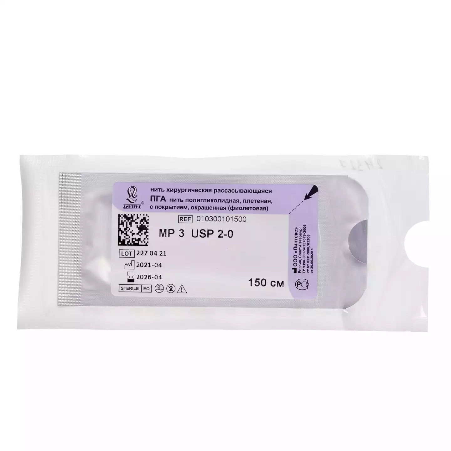 ПГА MP3 (USP2-0), длина 150см, нить полигликолидная плетеная с покрытием, окрашенная (фиол.)