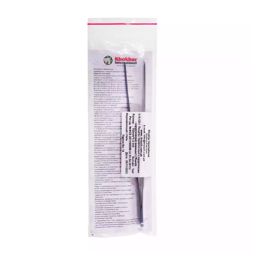 Пинцет К-15-123-1, анатомический, длина 150мм, ширина рабочей части – 1,5мм, аналог П-59