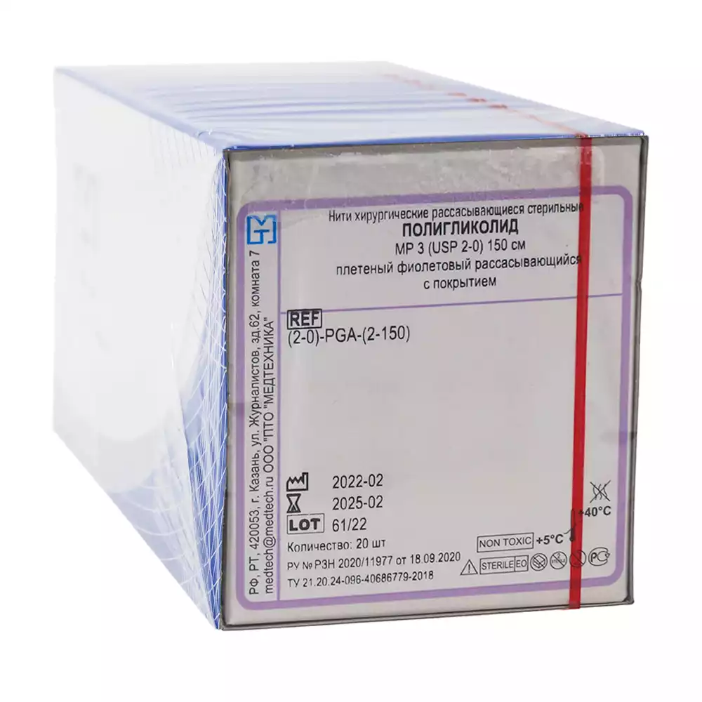 ПОЛИГЛИКОЛИД МР3 (USP 2-0), длина нити 150см, плетеный рассасывающийся, с покрытием, фиолетовый, (2-0)-PGA-(2-150)