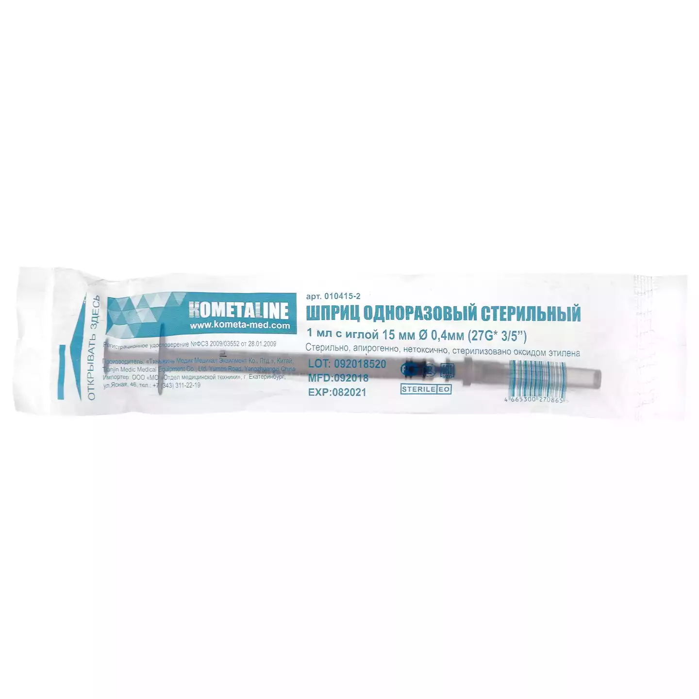 Шприц КОМЕТА 1,0мл туберкулиновый, 3-х компонентный, игла 27G (0,4х15мм), стерильный