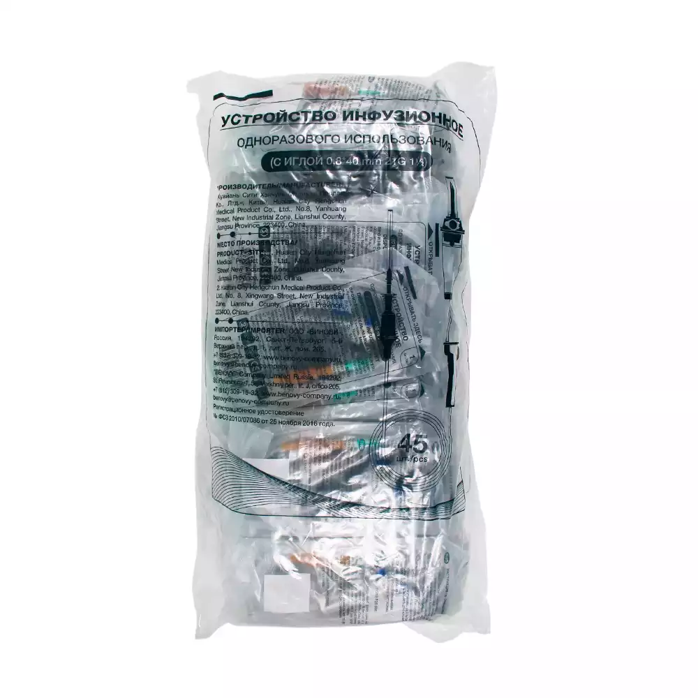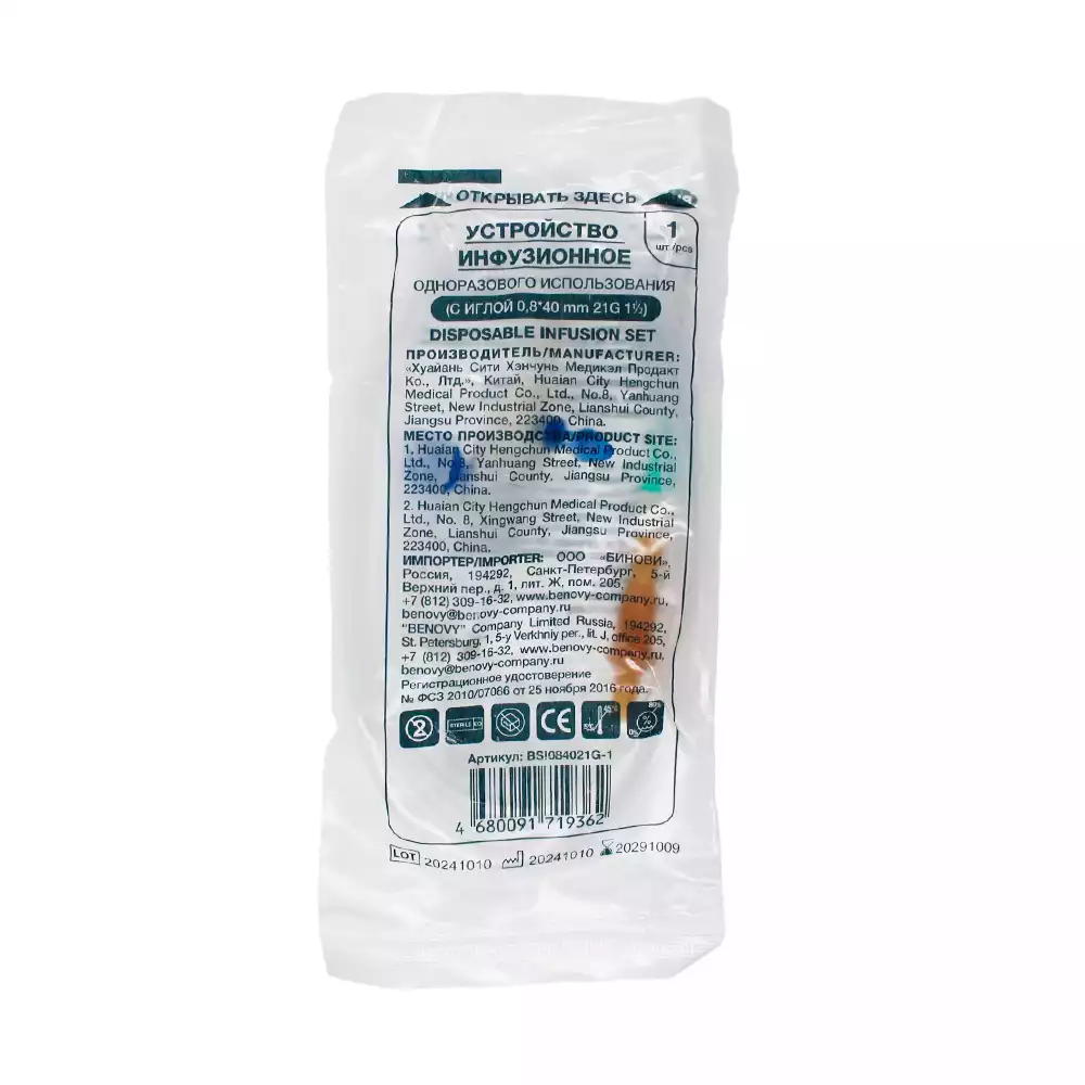 Система инфузионная для переливания растворов 21G игла 0,8*40, пластиковый шип, длина 150см, одноразовая, стерильная