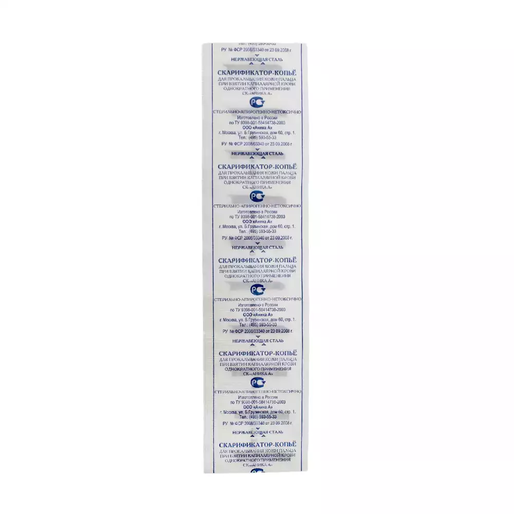 Скарификатор-копьё СКБ-32 "Аника А" предназначен для прокалывания кожи пальца при взятии капиллярной крови с целью проведения лабораторных исследований.