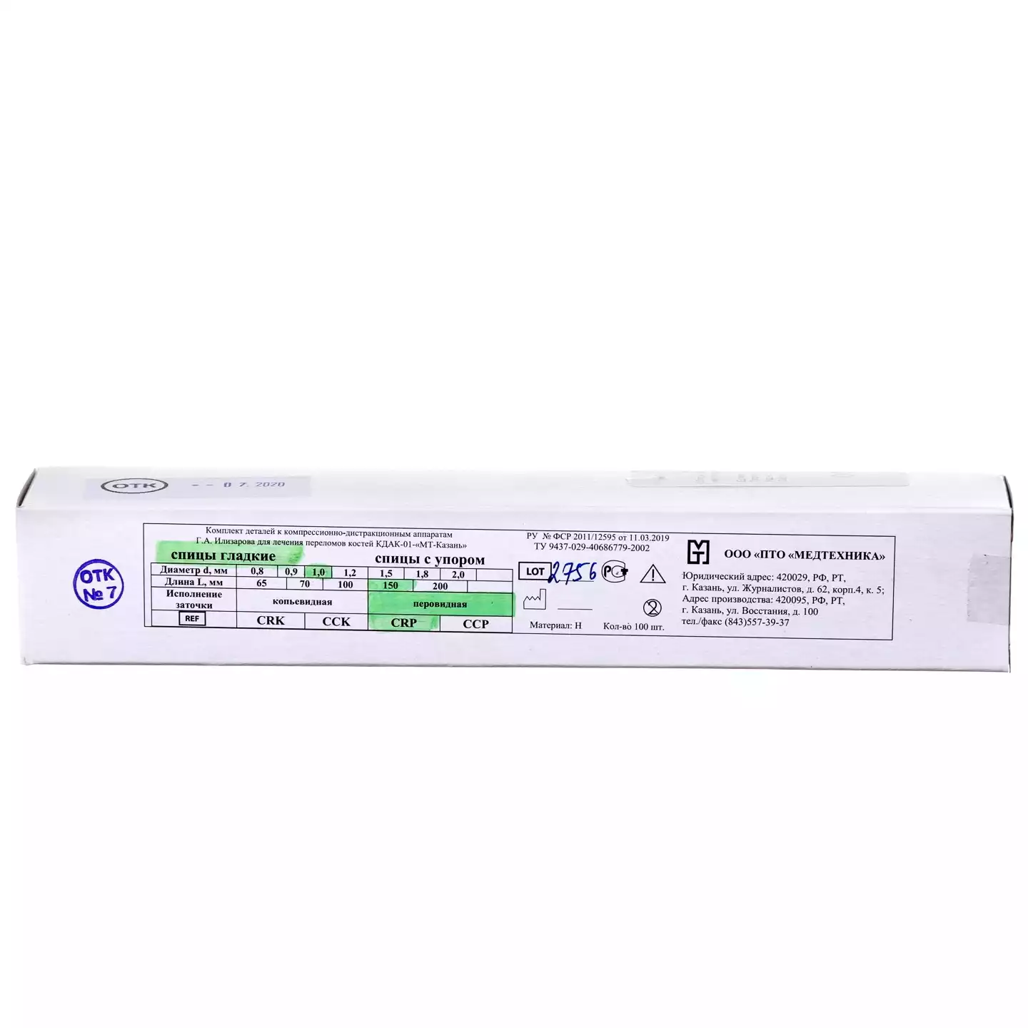 Спица для скелетного вытяжения гладкая, заточка перо, размер 1,0*150мм